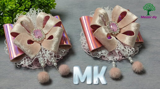 Бантики из двусторонней экокожи по шаблону с подвесками\Master diy канзаши