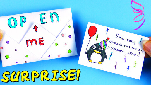 Сюрприз из бумаги. Оригами Конверт Открытка на День Рождения с сюрпризом! Happy Birthday Surprise