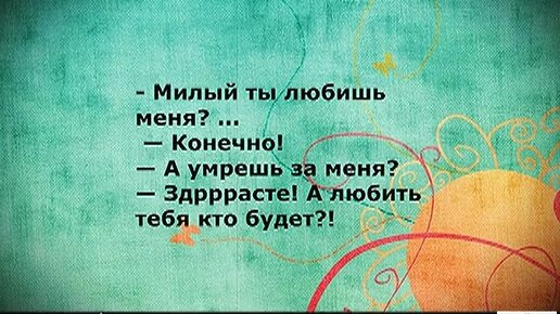 - Милый, ты любишь меня?.. - Конечно! - А умрешь за меня? - Здрррасте! А любить тебя кто будет?!..