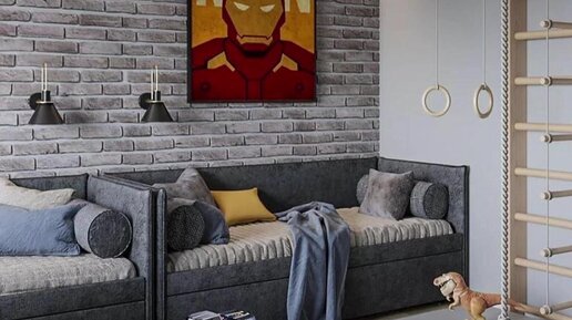 Крутой дизайн детской для мальчика в супергеройской теме и Лего