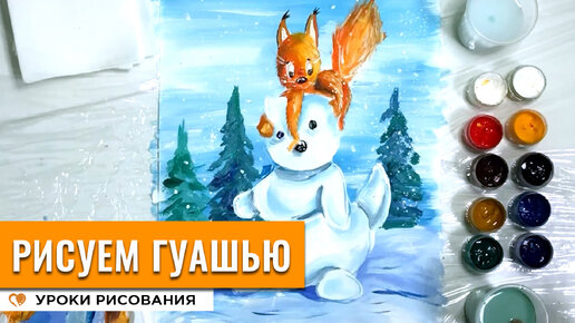 Урок рисования - снеговик и бельчонок гуашью быстро и просто