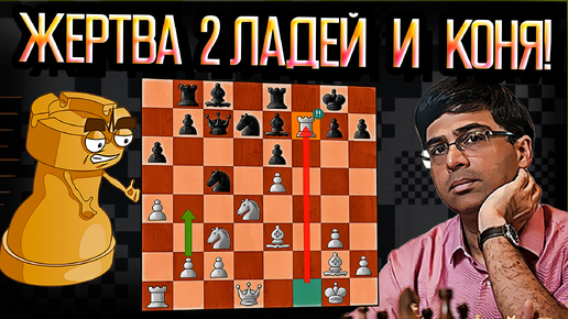 Нокаутирующий удар Виши Ананда: будующий чемпион мира жертвует 2 ладьи и коня за атаку. Шахматы