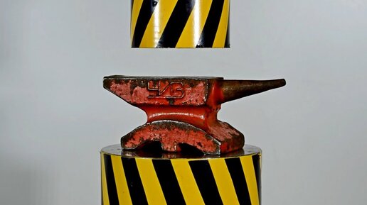 Пробуем раздавить 100 тонным прессом небольшую наковальню. Проверим какая наковальня окажется крепче советская или китайская
