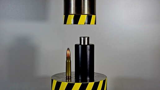 Проверим что будет если раздавить 100 тонным гидравлическим прессом патроны, в замкнутом пространстве
