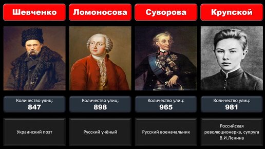 В честь каких известных личностей названо больше всего улиц в России?