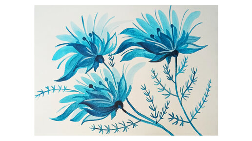 Далее: Акварельная зарисовка сине-голубых цветов.