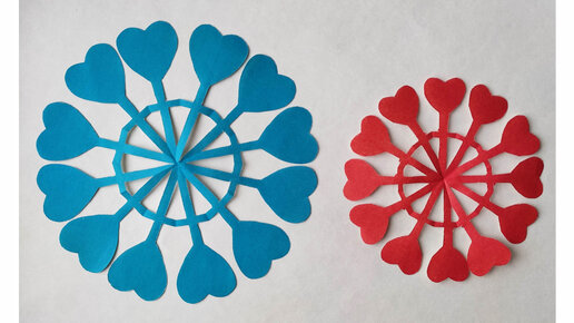 Как вырезать красивую снежинку из бумаги с сердечками.