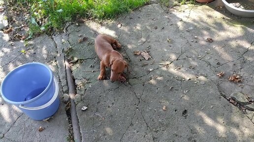 Русско-европейская лайка и такса. Жадный огненный пес