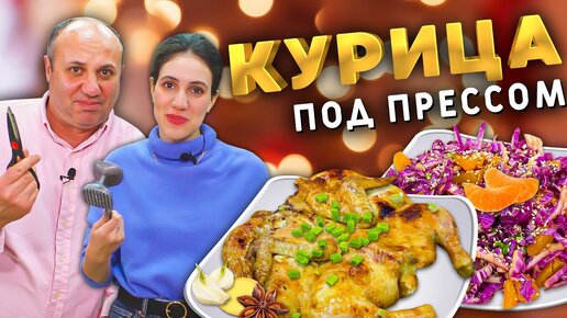 КУРИЦА ПОД ПРЕССОМ - доступное горячее на Новый год! Гарнир - салат с МАНДАРИНОМ!