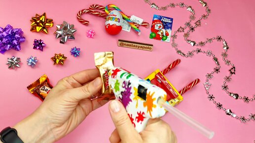 Взяла вкусняшки и сделала новогодний сладкий подарок санки из конфет