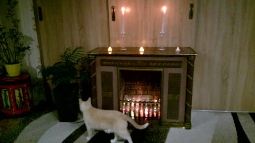 Камин из картона с решёткой.