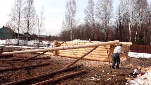 Как закатывали 9 метровое бревно на сруб?Строим дом в деревне. Часть 6.