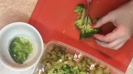 Необычный салат с броколли и крабовыми палочками очень удивит ваших гостей