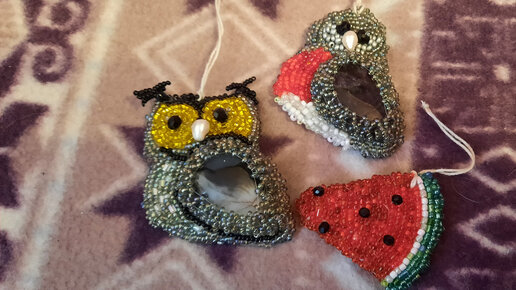 DIY. Новогодние украшения. Снегирь и арбузная долька из бисера.