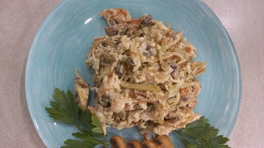 ОБАЛДЕННЫЙ ВКУСНЫЙ КУРИНЫЙ САЛАТ С ШАМПИНЬОНАМИ НА НОВЫЙ ГОД