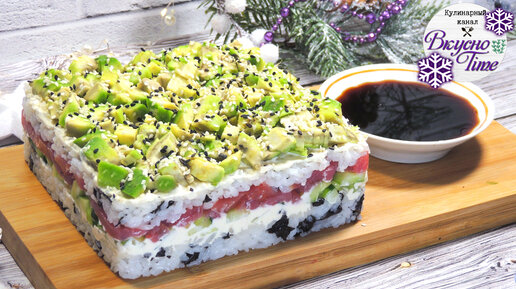 Новогоднее меню. Салат суши-торт! Очень вкусный