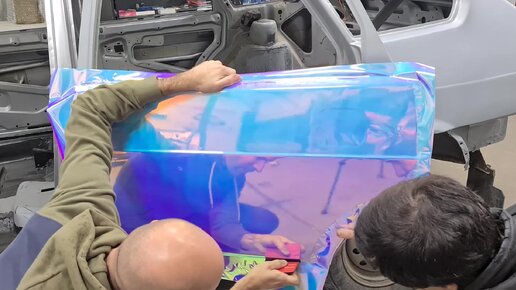 Клеим 2114 в аквамариновый хром, дошли до ручки... задней двери :)