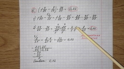 6) Найдите значение выражения (1 4/85-9/17) •34/55. ОГЭ по математике. Решу огэ. Разбор огэ математика. Номер 6, вариант 10.