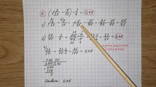 6) Найдите значение выражения (1 2/25-7/15) •3/4. ОГЭ по математике. Решу огэ. Разбор огэ математика. Номер 6, вариант 9. огэ