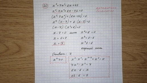 20)Решите уравнение х^3=7х^2-6х+42. Решу огэ. Решение с объяснением. Номер 20, вариант 9, Лысенко. Математика бесплатно. огэ.