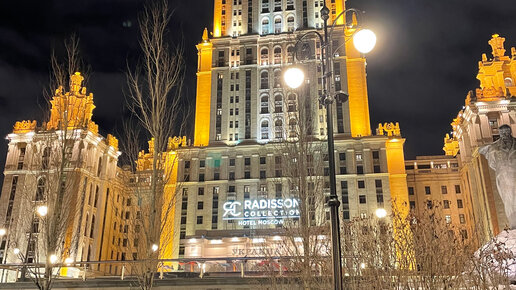 Гостиница Украина, памятник Тарасу Шевченко и новогодние украшения