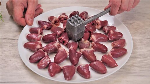 Маленькие отбивные из куриных сердечек разлетаются, как семечки! Куриные сердечки на сковороде.