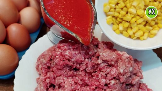 Ужин в сковороде: смешала фарш с кукурузой, добавила томатный сок и картофель - получилось очень вкусно.