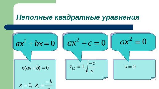 Решение неполных квадратных уравнений.