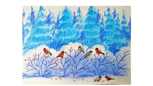 Далее: Черные силуэты деревьев на закате. Рисунок сухой пастелью.