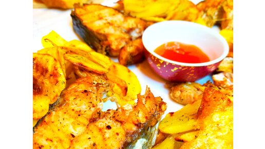 Горбуша с картофелем на сковороде гриль. Постный ужин.