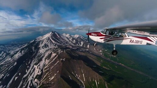 Пилот Андрей Мельников над вулканами на «Сessna-172». Камчатка
