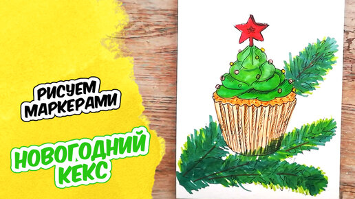 Как нарисовать маркерами КЕКС на Новый год | Рисуем пирожное капкейк поэтапно для начинающих
