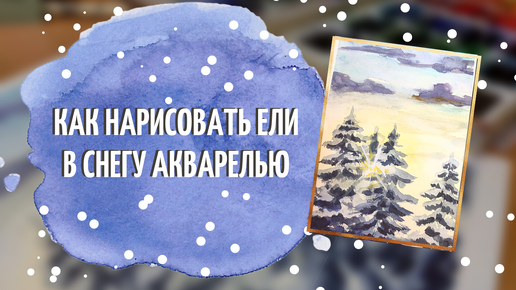 Как нарисовать зимний пейзаж акварелью. Ели в снегу
