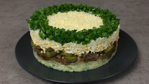 Ну до чего же вкусный салат с шампиньонами и маринованными огурчиками, обязательно буду готовить его на Новогодний стол