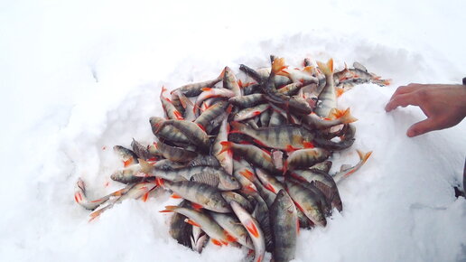 Лютая рыбалка на зимнего окуня. Клюет только опускай блесну.