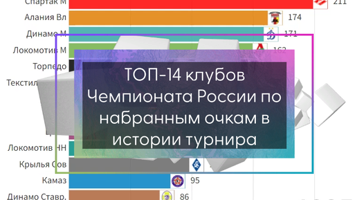ТОП-14 клубов Чемпионата России по набранным очкам в сумме за всю историю турнира (1992-2021)