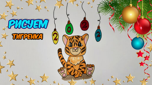 Как нарисовать ТИГРЕНКА НА НОВЫЙ ГОД 2022 СИМВОЛ ГОДА/DRAW A TIGER 2022 SYMBOL OF THE YEAR
