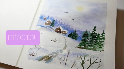 Простой зимний пейзаж. Акварель для начинающих