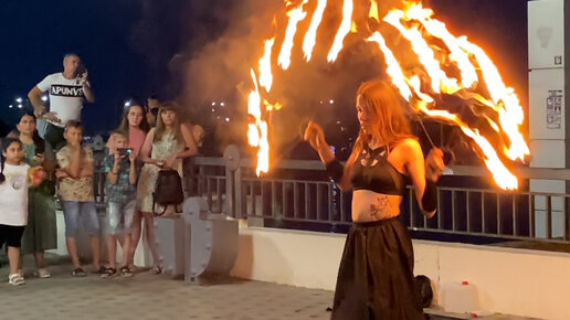 Анапа. Фаер шоу fire show от уличных артистов @aladdin.250 и @nata1ia_c в Анапе на Набережной 2021.