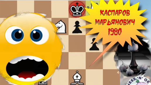 Каспаров умело играет в "староиндийской" против Марьяновича, генерируя сильные ходы один за другим - мат на доске (Валетта, 1980