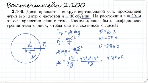 Диск вращается вокруг вертикальной оси: Волькенштейн 2.100