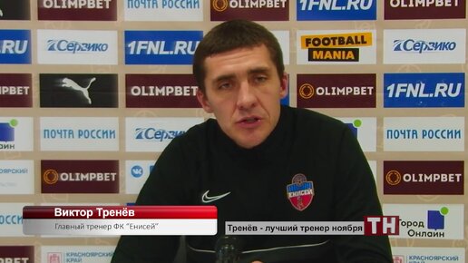 Главный тренер футбольного «Енисея» Виктор Тренёв признан лучшим тренером Олимп-ФНЛ в ноябре.