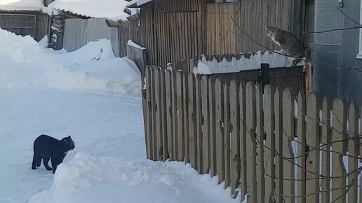 Кошачья потасовка. Победитель провожает взглядом поверженного противника