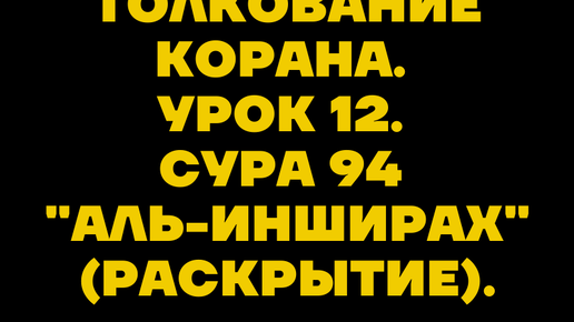 Толкование Корана. Урок 12. Сура 94 "аль-Инширах" (Раскрытие).