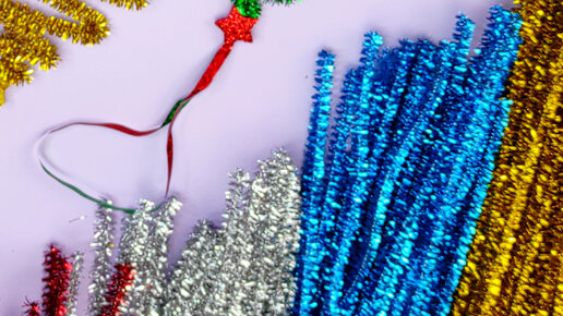 Сделала новогоднюю поделку в садик или школу за пару минут из синельной проволоки