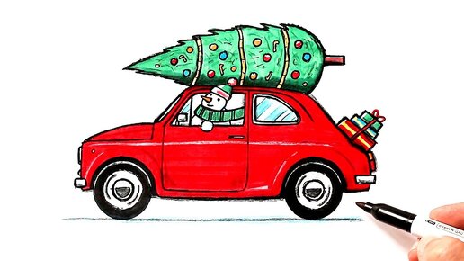 Как нарисовать Новогоднюю машину с елкой @РИСУНКИ ЮЛЬКИ