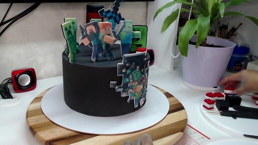Торт в стиле игры МайнКрафт . Торт для мальчика. Торт на 9 лет. Мастичный торт