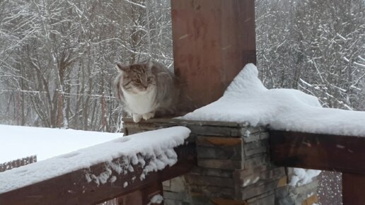 наконец то кошка Кися дождалась снега