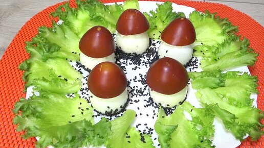 Закуска фаршированные яйца ,как грибы вкусно ,просто, быстро!