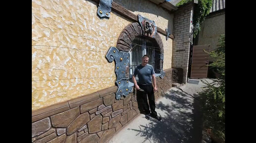 оформление цоколя дома декоративный камень, оформление окон дома ковка из цемента.декоративная штукатурка фасада.